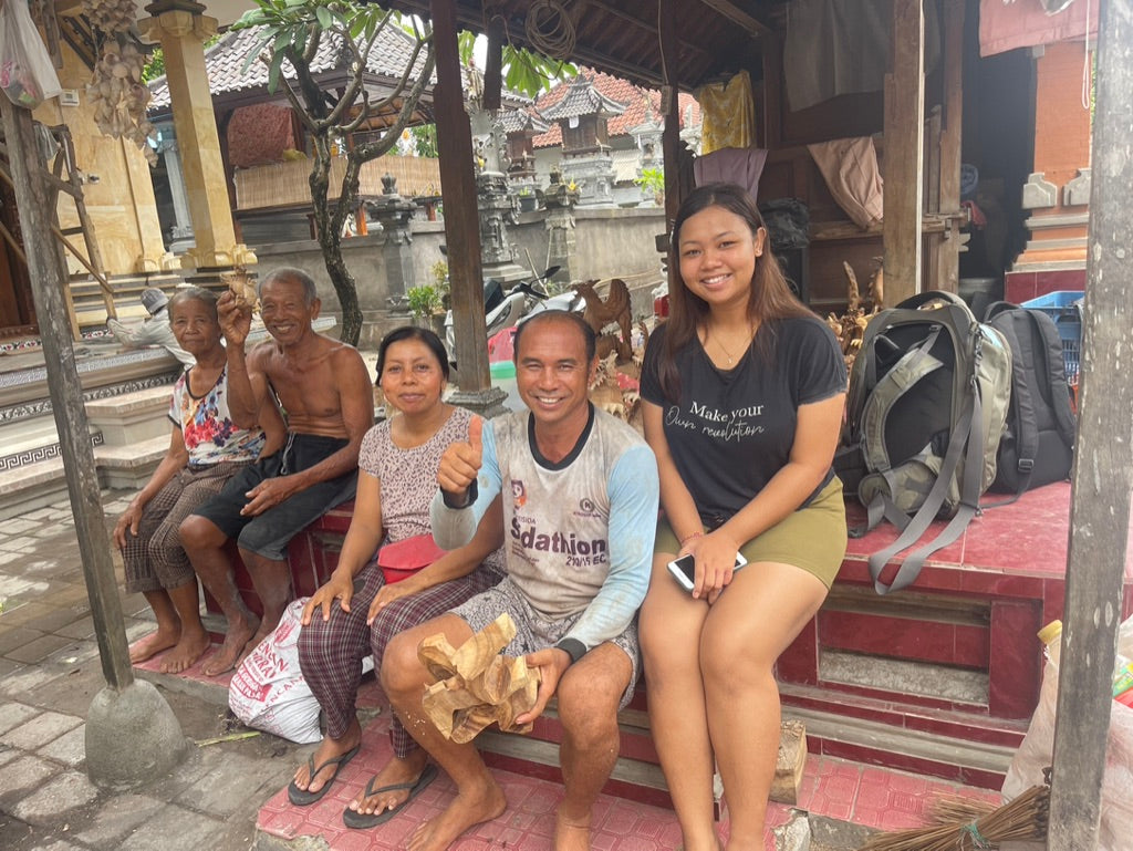 Families such as husband and wife team - Khoman and Wayan, Bu Rintin with her family (as seen here), and Agung Rai work tirelessly to uphold the island's proud tradition of craftsmanship. Agung Rai not only coordinates with the carvers but also ensures that every product and shipment arrive safely in Canada. Their dedication and expertise are at the heart of our beautiful wood carvings.